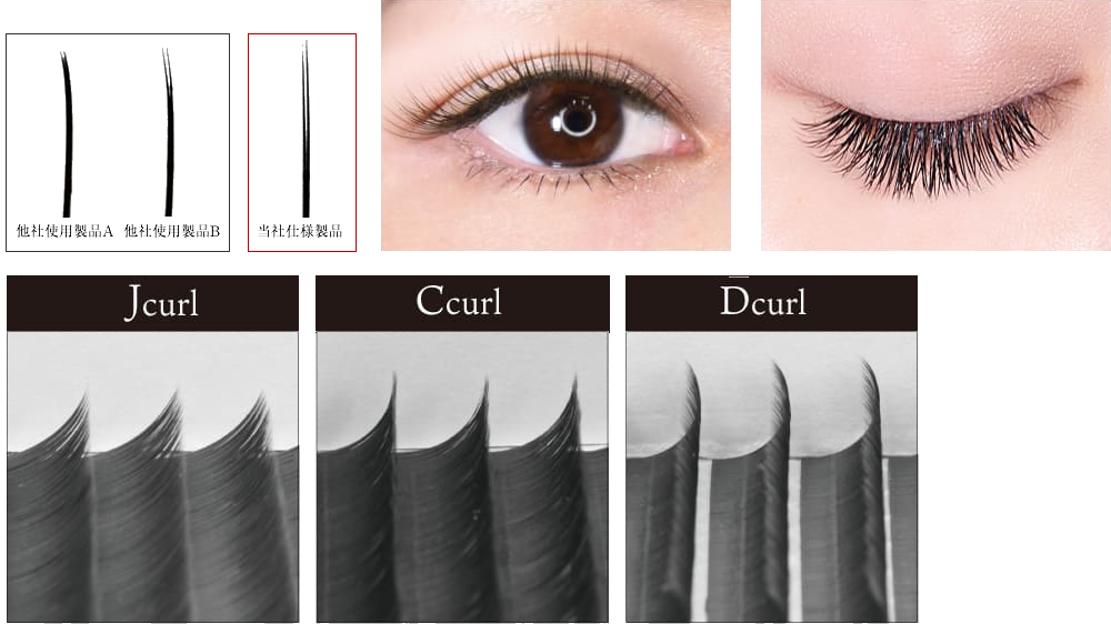 断面が特殊加工で蝶ネクタイの形をしているため地まつ毛にフィットし、地まつ毛とエクステンションとの接着面が増えるので、持ちが格段と良くなります。
